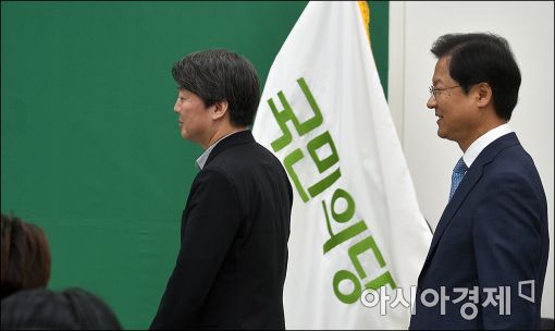 [아시아경제 윤동주 기자] 안철수, 천정배 국민의당 상임공동 대표가 25일 서울 여의도 국회에서 열린 최고위원회의에 참석하고 있다.