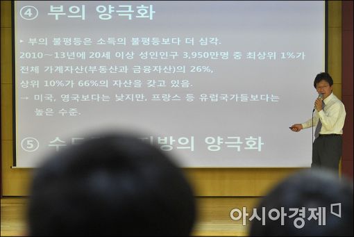[아시아경제 윤동주 기자] 유승민 의원이 31일 서울 종로구 성균관대 법학관에서 '경제위기와 정치의 역할'이라는 주제로 강연을 하고 있다.