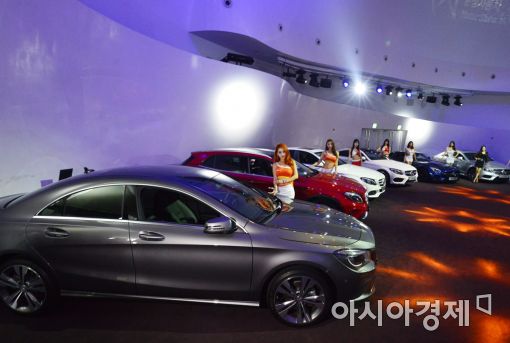[아시아경제 문호남 인턴기자] 8일 반포 한강시민공원 앞 세빛섬에서 열린 한성자동차 모터쇼에서 레이싱 모델들이 차량 앞에서 포즈를 취하고 있다.