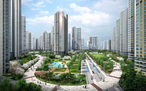 SK건설이 인천 남구 용현학익지구 2-1블록에 지난 달 28일 입주를 시작한 `인천 SK 스카이뷰`는 전용면적 59~84㎡, 총 3971가구의 미니신도시급 규모로 건강한 생활이 가능한 친환경 내부 설계와 단지 내 풍부한 녹지공간을 갖춘 작은 도시형태로 설계됐다.