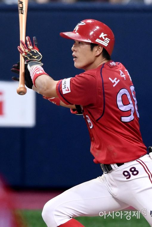 [아시아경제 김현민 기자] 프로야구 KIA 타이거즈와 넥센 히어로즈의 2016 KBO리그 경기가 11일 서울 고척스카이돔에서 열렸다. 5회초 1사 2,3루에서 KIA 노수광이 추가 2타점 적시타를 치고 있다.