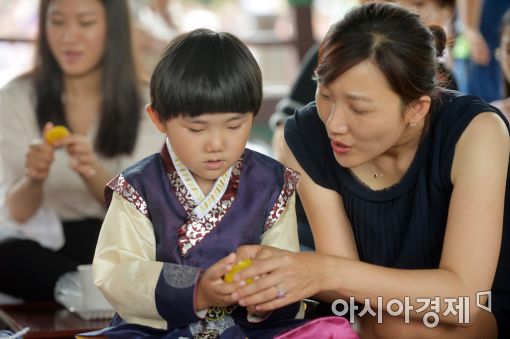 [아시아경제 문호남 인턴기자] 추석 연휴 마지막날인 16일 서울 중구 남산골 한옥마을에서 열린 '추석맞이 오五대감 한가위 잔치'를 찾은 시민들이 송편을 만들고.