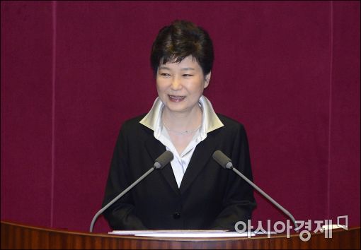 [아시아경제 윤동주 기자] 박근혜 대통령이 24일 국회 본회의장에서 2017년도 예산안 시정연설을 하고 있다.