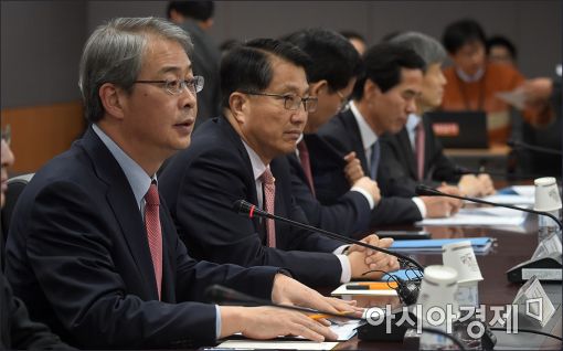 [아시아경제 윤동주 기자] 임종룡 금융위원장이 9일 정부서울청사에서 열린 금융위-금감원 합동 긴급 금융시장상황 점검회의에 참석, 모두 발언을 하고 있다.