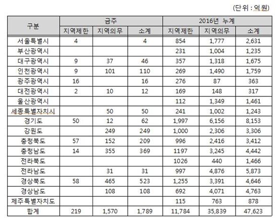 $pos="C";$title="지역별 지역제한·지역의무공동도급 현황. 조달청 제공";$txt="지역별 지역제한·지역의무공동도급 현황. 조달청 제공