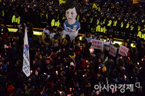 [아시아경제 문호남 인턴기자] 박근혜 정권 퇴진 비상국민행동을 비롯한 시민들이 5일 서울 종로구 청운효자동 주민센터에서 촛불집회를 열고 있다. 박근혜 정권 퇴진 비상국민행동은 오는 29일까지 매일 저녁 7시 광화문 광장 앞에서 집회를 열고, 8시부터 10시까지 청와대 앞 200m 지점인 청운효자동 주민센터까지 행진을 한다.