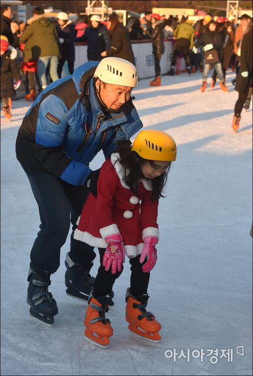[아시아경제 윤동주 기자] 11일 서울 여의도공원에 설치된 여의도 스케이트장을 찾은 시민들이 스케이트를 즐기고 있다.