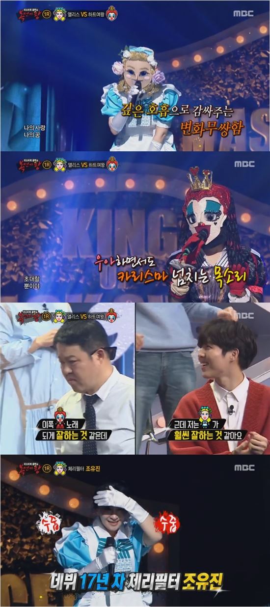 11일 방송된 MBC '일밤-복면가왕'에서는 '앨리스'와 '하트여왕'으로 분장한 두 출연자가 정경화의 '나에게로의 초대'를 부르며 남다른 가창력을 과시했다.