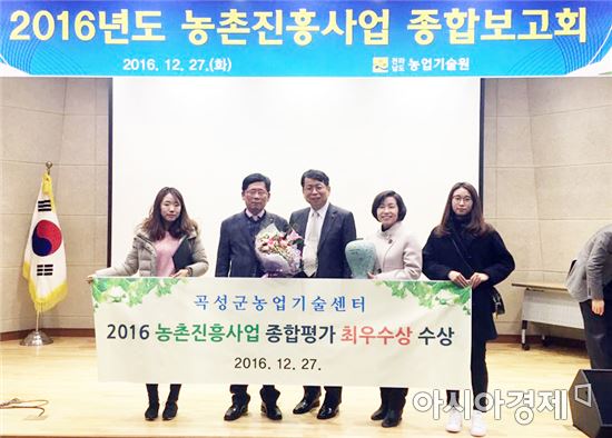 [아시아경제 노해섭 기자]곡성군(군수 유근기)은 지난 27일 전남농업기술원에서 개최된 ‘2016년 전라남도 농촌진흥사업 종합평가’에서 종합우수기관으로 선정돼 최우수상을 수상했다고 밝혔다.