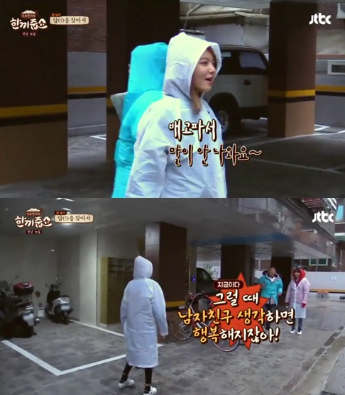 수영은 4일 방송된 JTBC '한끼줍쇼'게스트로 출연해 연인 정경호에 관한 질문을 받았다.