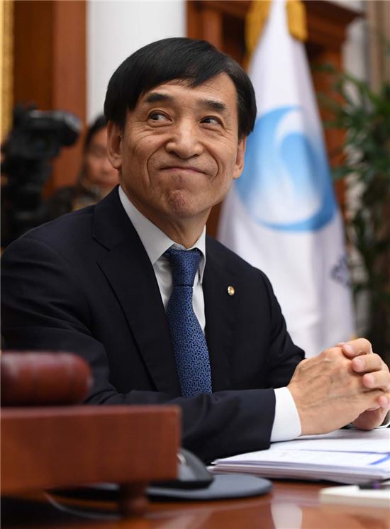 이주열 총재 밝은 표정으로 입장…이날 발표될 경제성장전망에 하향폭에 관심 더 쏠려