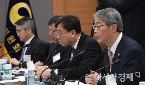 [아시아경제 백소아 기자] 임종룡 금융위원장이 23일 서울 세종로 정부서울청사에서 열린 금융공공기관장 간담회에서 발언하고 있다. 이날 임 위원장은 "금융공공기관들이 솔선수범해 청년 신규채용을 최대한 확대해 달라"고 당부했다.