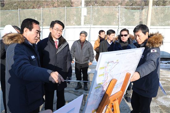 이곳은 내년에 열리는 평창동계올림픽 지원도로로 강 장관은 이날 원주지방국토관리청을 들러 사업 전반에 대해 업무보고를 받았다. 이어 정선국토관리사무소를 방문해 제설대책 현황과 도로장비 관리실태 등을 점검했다.