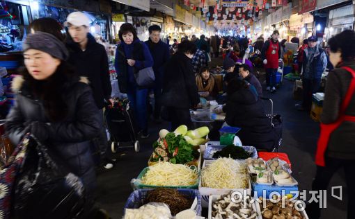 [아시아경제 문호남 수습기자] 민족대명절 설날 연휴를 하루 앞둔 26일 서울 종로구 광장시장에서 제수용품을 준비하러 나온 시민들이 시장을 둘러보고 있다.