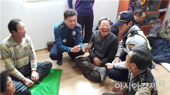 [아시아경제 김현종 기자]완도경찰서 노화파출소(소장 김진)는 고령화된 도서지역의 마을이 범죄로부터 취약한 점을 감안 마을 경로당을 다니며 외부로부터 수상한 차량이나, 농수산물을 수확하는 의심가는 사람들에 대해 휴대폰으로 사진 또는 동영상 촬영 방법을 알려주고 촬영한 자료는 경찰과 함께 공유하는 운동을 전개하고 있다