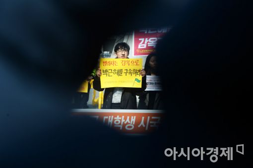[아시아경제 문호남 수습기자] 박근혜 대통령 탄핵 선고일이 임박한 3일 서울 종로구 광화문 광장 세종대왕상 앞에서 박근혜 정권 퇴진을 촉구하는 전국대학생시.