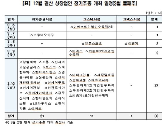 3월 둘째주, 33개 상장사 정기주총 개최