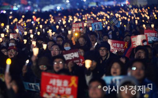 [아시아경제 문호남 수습기자] 박근혜 전 대통령에 대한 구속영장 청구 여부가 임박한 25일 서울 종로구 광화문 광장에서 열린 21차 촛불집회에서 시민들이 본집.