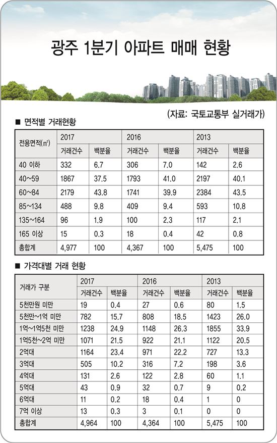 올 1분기 광주지역 아파트 ‘중소형’ 거래 활발