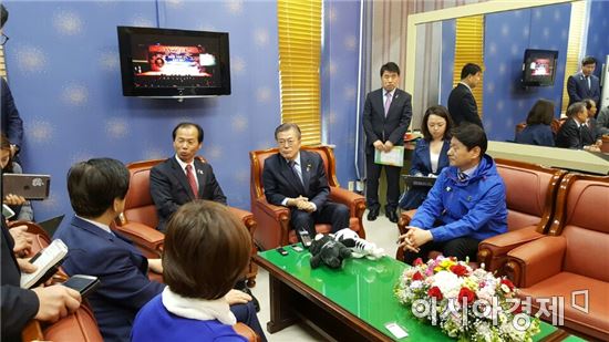 강원도를 방문중인 문 후보는 이날 강원대학교 백령아트센터 VIP룸에서 최문순 강원도 지사와 면담했다. 문 후보는 "정권교체가 되면 (평창올림픽 개최까지) 남은 기간 동안 대통령이 직접 챙기겠다"고 약속했다.