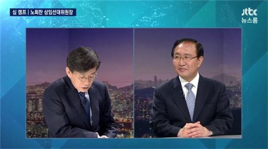 24일 방송된 JTBC ‘뉴스룸’에는 노회찬 상임선대위원장이 출연해 손석희 앵커와 이야기를 나눴다.