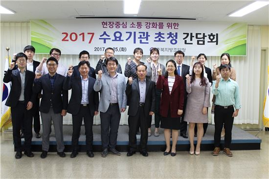 [아시아경제(청주) 정일웅 기자] 충북지방조달청은 25일 관내 조달 수요기관의 조달업무 관계자 20여명과 간담회를 진행했다. 간담회는 올해 조달 주요정책을 설명하고 재정사업의 조기집행에 관한 기관 간 협업을 요청하는 자리로 마련됐다. 또 참석자들을 대상으로 벤처나라와 우수 조달물품 제도를 소개하는 한편 효율적 구매업무를 주제로 토론하는 시간을 가졌다. 충북지방조달청 이기헌 청장은 “조달청은 수요기관을 주요 고객으로 인식, 조달업무에 불편함이 없도록 하는데 최선을 다하겠다”며 “더불어 각 수요기관은 조달청과 지역경제를 활성화 하는데 함께 노력해 주길 바란다”고 당부했다. 충북지방조달청 제공