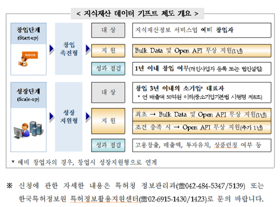이 제도는 지식재산 정보 서비스 개발에필요한 특허 공보 등 데이터를 무상으로 제공하는 것을 골자로 시행된다.