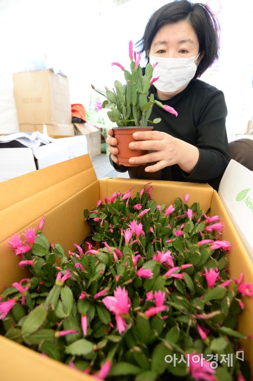 [아시아경제 문호남 수습기자] 중국발 미세먼지가 연일 기승을 부리고 있는 1일 서울 종로구 청계광장에서 열린 '공기정화식물 직거래장터'에서 마스크를 쓴 시민이 공기정화식물을 살펴보고 있다. 판매수종은 수염 틸란드시아, 보스톤고사리, 아이비 등 총 6종이며 오는 2일까지 열린다.
