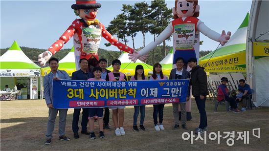 [아시아경제 이전성 기자] 영광경찰서(서장 임춘석)는 지난달 28일 생활주변 공동체 신뢰를 저해하는 3대 사이버 반칙 근절을 위한 캠페인을 전개했다.
