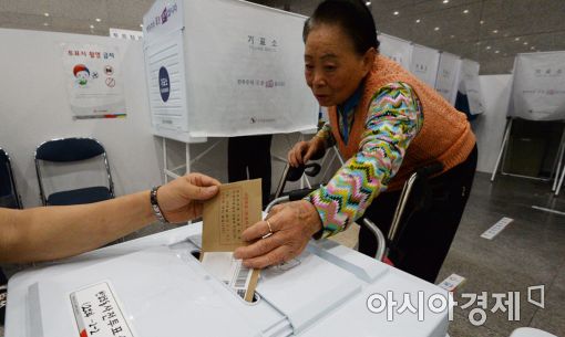 [아시아경제 문호남 수습기자] 제19대 대통령 선거, 사전투표 둘째날인 5일 서울 용산구 용산역에 마련된 사전투표소에서 한 시민이 투표를 하고 있다. 중앙선거관리위원회에 따르면 19대 대선 사전투표율은 오전 8시(12.50%) 이후 역대 전국단위 사전투표율 최고치를 기록했다. 사전투표가 처음 시행된 2014년 6·4 지방선거 사전투표율은 11.49%, 지난해 4·13 총선의 사전투표율은 12.19%였다.