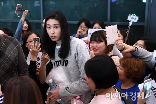 [영종도=아시아경제 김현민 기자]터키 여자배구에서 소속팀 페네르바체의 통산 5번째 우승을 이끈 '배구 여제' 김연경이 8일 인천국제공항을 통해 귀국하고 있다.