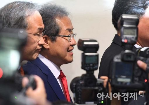 [아시아경제 백소아 기자] 홍준표 자유한국당 대선후보가 9일 서울 영등포구 자유한국당사 선거상황실에서 소감 발표를 마친 후 퇴장하고 있다.