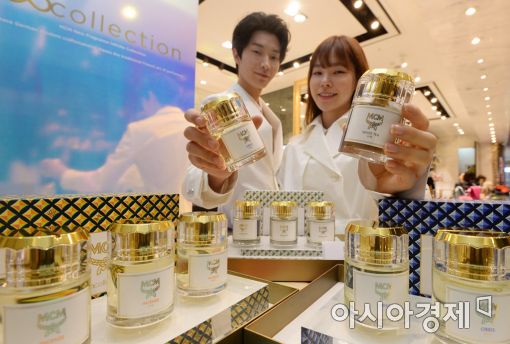 [아시아경제 문호남 수습기자] MCM 홍보 도우미들이 11일 서울 중구 롯데백화점 본점 매장에서 유니섹스 퍼퓸 '인피니트 컬렉션(INFINITE COLLECTION)을 선보이고 있다. 인피니트 컬렉션은 프랑스 출신 제롬 디 마르노(Jerome Di Marno)가 참여했으며 인센스(Incense), 화이트 티(White Tea), 오리스(Orris)의 세 가지로 구성됐다.