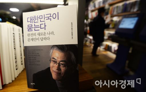 [아시아경제 문호남 수습기자] 11일 서울 종로구 교보문고에 문재인 대통령 관련 서적들이 배치돼 있다. 문 대통령이 표지에 실린 '타임' 아시아판은 이례적으로 품절 사태를 빚은 뒤 2만 부가 추가 제작돼 서점가에 배포됐다. 뿐만 아니라 온라인 서점 알라딘에서 24시간 동안 '타임'지 판매량이 7천24권을 기록, 역대 도서 일간 판매량 최고 기록을 세웠다.