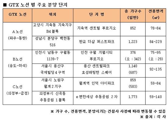 ■ 5, 6월 GTX 각 노선 인근 주요 분양 단지