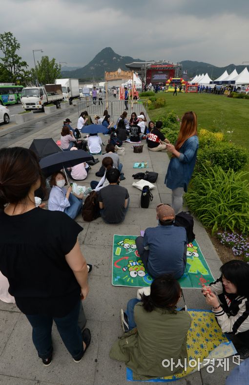 [아시아경제 문호남 수습기자] 2017 FIFA U-20 월드컵 조별예선 A조 2차전 아르헨티나 경기를 앞둔 23일 서울 종로구 광화문광장에 U-20 태극전사의 선전을 기원하는 거리응원 부스가 설치돼 있는 가운데 시민들이 사전공연 및 응원에 참가하기 위해 줄을 서고 있다.