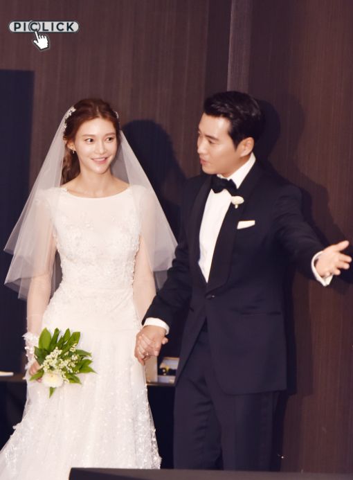 배우 주상욱과 차예련이 25일 오후 서울 광장동 워커힐호텔 코스모스홀에서 진행된 결혼 기자회견을 위해 입장하고 있다.
