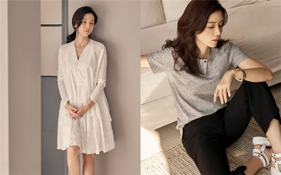 심플하면서도 세련된 스타일링을 완성하고 싶다면 카디건과 티셔츠를 활용해보자. 광고 속 이보영이 선보인 카디건은 시원하면서도 고급스러운 컬러감과 플레어 라인이 돋보이는 제품이다. 여유로우면서도 여성스러운 스타일을 완성시켜준다. 심플한 디자인과 부드러운 소재가 돋보이는 티셔츠는 편안하면서도 세련된 스타일을 연출할 수 있다.