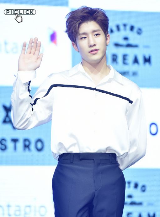 26일 오후 서울 강남구 삼성로 SAC아트홀에서 그룹 아스트로 (ASTRO / 차은우, 문빈, MJ, 진진, 라키, 윤산하)의 네 번째 미니앨범 '드림 파트 1(Dream Part. 01)' 발매기념 쇼케이스가 열렸다. 이 자리에서 아스트로 진진이 포토월 포즈를 취하고 있다.