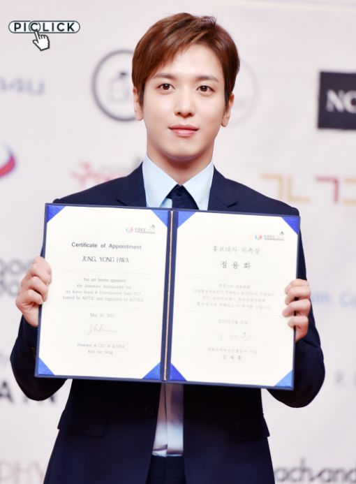 그룹 씨앤블루 정용화가 31일 오전 서울 서초구 KOTRA 본사에서 열린 2017 코리아브랜드 & 한류상품박람회(홍콩) '한류홍보대사 위촉식'에 참석하고 있다.