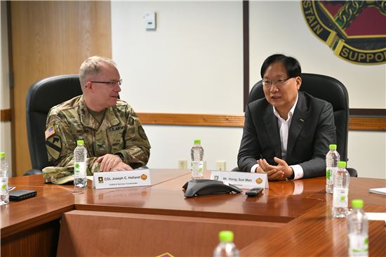 [아시아경제(대전) 정일웅 기자] 코레일 홍순만 사장은 31일 주한미군 평택기지를 방문, 기지 내 철도물류시설을 안전 점검했다. 홍 사장이 철도물류시설 점검을 마치고 조셉 홀랜드 사령관을 만나 환담하고 있다. 코레일 제공