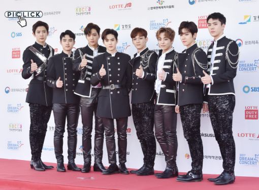 그룹 엑소가 3일 오후 서울 마포구 성산동 상암월드컵경기장에서 열린 ‘제23회 사랑한다 대한민국 2017 드림콘서트’에 참석해 포토타임을 갖고 있다.