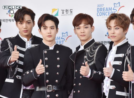 그룹 엑소가 3일 오후 서울 마포구 성산동 상암월드컵경기장에서 열린 ‘제23회 사랑한다 대한민국 2017 드림콘서트’에 참석해 포토타임을 갖고 있다.