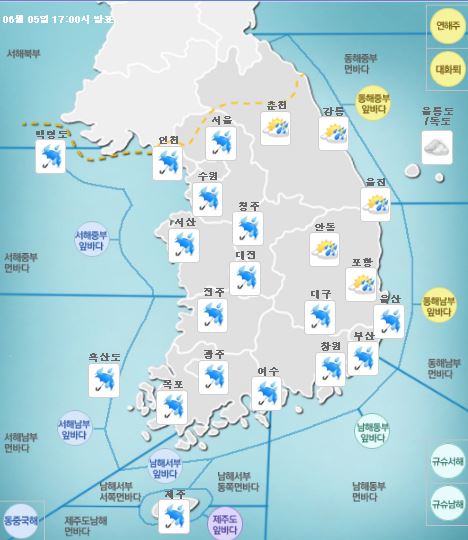 [오늘 날씨] 밤부터 전국 비 '최대 80㎜'..미세먼지 농도 전국 '보통'