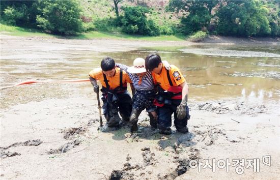 [아시아경제 노해섭 기자]영광소방서(서장 김도연) 함평119구조대는 13일 오전 11시 42분경 함평군 나산면 이문리 석지저수지에서 농업용 용수를 확보하고자 저수지 내에 펌프 흡입호스를 설치하려다 진흙에 발이 빠진 채 고립되어 탈진에 이른 한 농민을 발견하고 구조장비를 이용하여 안전하게 구조했다.