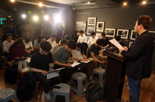 20일 서울 마포구 이한열기념관에서 열린 육군 22사단 구타, 가혹행위 자살사건 긴급 기자회견에서 군인권센터 임태훈 소장이 가해자 즉각 구속, 처벌 등을 요구하는 기자회견을 하고 있다. [이미지출처=연합뉴스]