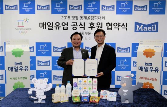 매일유업과 2018 평창동계올림픽 조직위원회는 2일 조직위 서울사무소에서 평창동계올림픽의 공식후원협약을 체결했다. 이번 협약으로 매일유업은 평창동계올림픽의 성공적 개최를 위해 대회 기간 중 선수단과 취재진 등에게 제공되는 흰우유, 떠먹는 요구르트, 치즈 등의 유제품을 공급하게 된다.