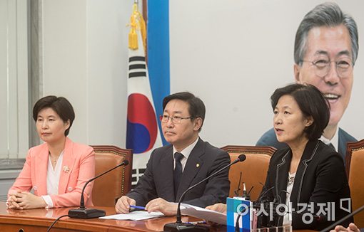 [아시아경제 윤동주 기자] 추미애 더불어민주당 대표가 17일 국회에서 열린 적폐청산위 첫 회의에 참석, 모두발언을 하고 있다.
