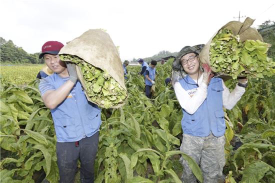 KT&G, 잎담배 수확 봉사 진행…'11년째 꾸준한 상생 실천'