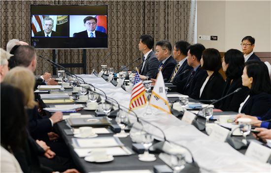이날 회의는 지난달 12일 미국 USTR이 무역 불균형 문제를 이유로 특별회기 개최를 요구한 지 40여일만에 개최됐다. 수석대표인 김 본부장과 로버트 라이트하이저 무역대표부(USTR) 대표 간 영상회의를 통해 큰 틀에서의 의제를 정한 뒤, 고위급 대면회의에서 세부내용을 조율하는 방식이다.